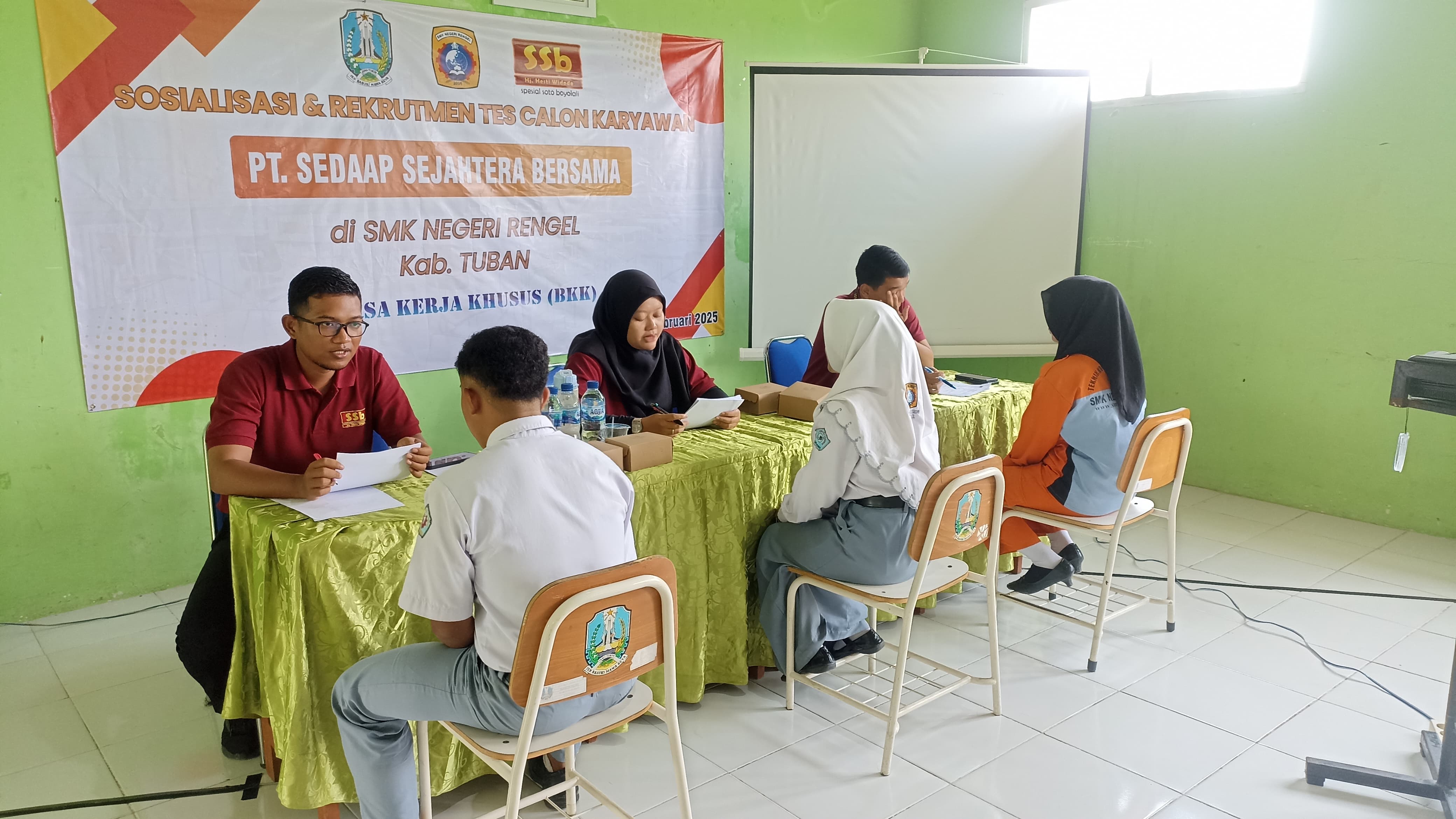 Rengel, 5 Februari 2025 – Sekolah Menengah Kejuruan Negeri (SMKN) Rengel, Kabupaten Tuban, terus berupaya mempersiapkan lulusannya untuk siap terjun ke dunia kerja. Dalam rangka mewujudkan hal tersebut, SMKN Rengel menjalin kerja sama dengan PT. Sedaap Sejahtera Bersama, sebuah perusahaan yang bergerak di bidang Food and Beverage, untuk menyelenggarakan rekrutmen tes calon tenaga kerja bagi para siswa kelas XII dan Alumni.
